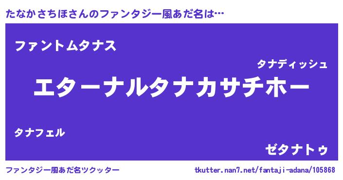 | ポケモン風あだ名 | 『タナカダネ』『ヒタナカサチホ』 |