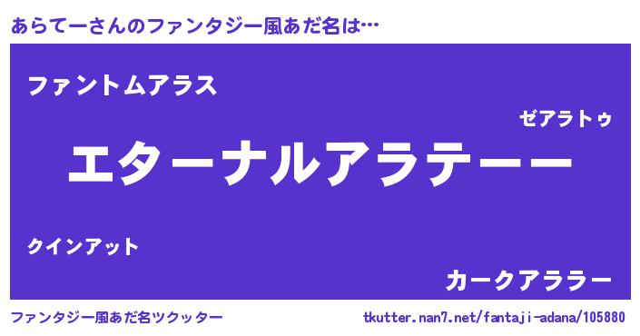| 意味不明あだ名 | 『あらてーフォーエバー』『自称あらてー』 |