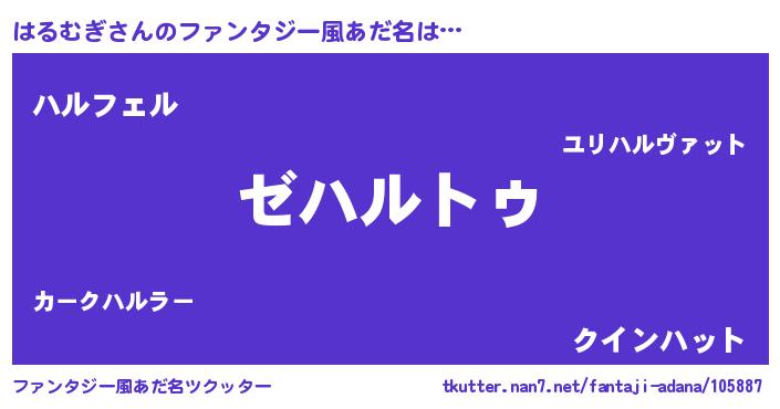 | 男性向けラノベタイトル風あだ名 | 『Re:はるむぎから始める異世界生活』 |