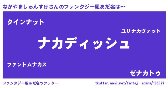 | 男性向けラノベタイトル風あだ名 | 『なかやましゅんすけという概念が存在しない退屈な世界 』 |
