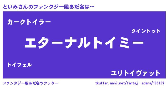 | 女子向けラノベタイトル風あだ名 | 『といみ伯爵の花嫁』『死神といみの再婚』 |