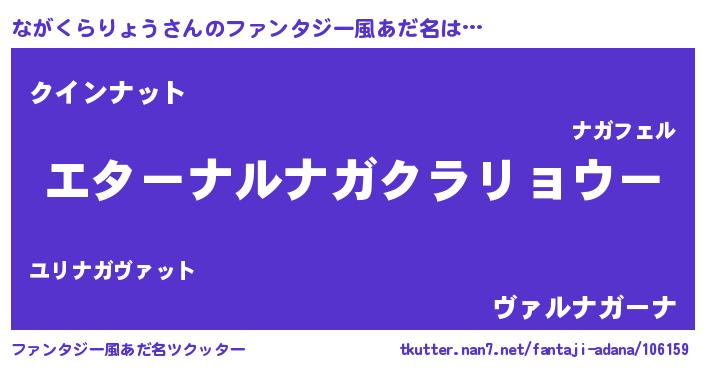 | 女子向けラノベタイトル風あだ名 | 『ながくらりょうの雑貨屋さん』 |