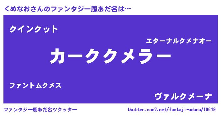 | 欧米人風あだ名 | 『くめなお・ステッグマイヤー』 |