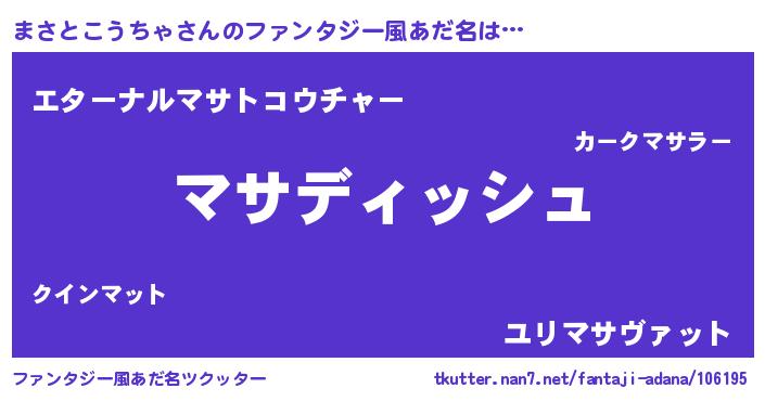 | 男性向けラノベタイトル風あだ名 | 『まさとこうちゃという概念が存在しない退屈な世界 』 |