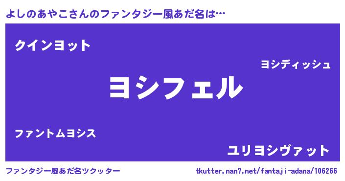 | ヒーロー風カッコイイあだ名 | 『スーパーヨシノアヤコ』『魔戒騎士ヨシ』 |