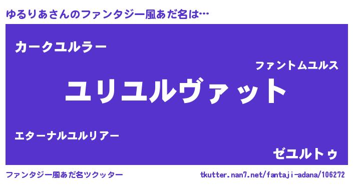 | ヒーロー風カッコイイあだ名 | 『ウルトラ戦士ユルリア』『銀牙騎士ユル』 |