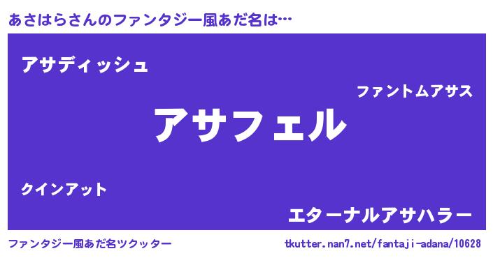 | 男性向けラノベタイトル風あだ名 | 『アサハラアートオンライン』 |