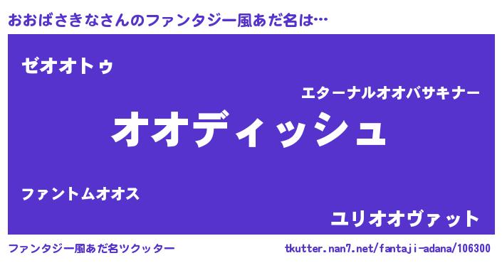 | ヒーロー風カッコイイあだ名 | 『ネオオオバサキナ』『黄金騎士オオ』 |