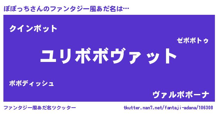 | 男性向けラノベタイトル風あだ名 | 『ボボッチスレイヤー』 |