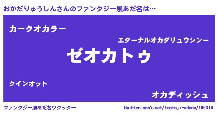 | 女子向けラノベタイトル風あだ名 | 『おかだりゅうしんアンティーク』 |