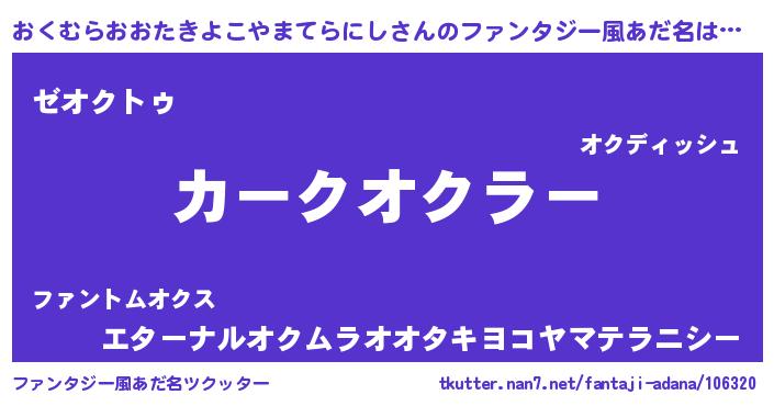 | 料理風あだ名 | 『おくむらおおたきよこやまてらにしの炊き込みご飯』 |