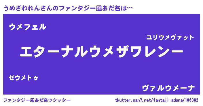 | ポケモン風あだ名 | 『ウメザダネ』『ウメゴンZ』 |
