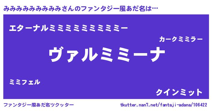 | 男性向けラノベタイトル風あだ名 | 『魔弾の王とみみみみみみみみみ』 |
