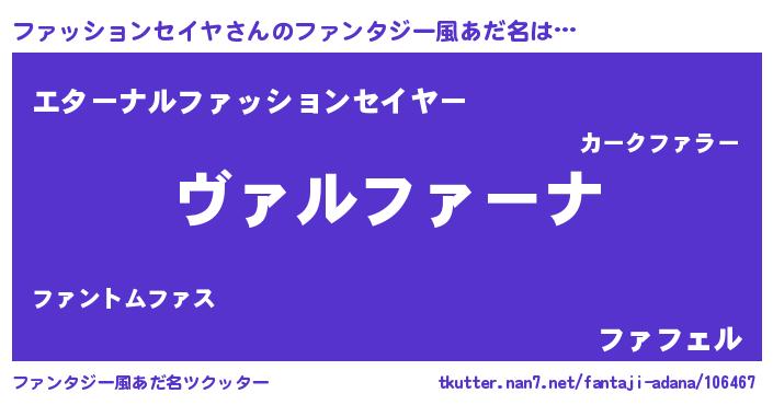| 男性向けラノベタイトル風あだ名 | 『この素晴らしい世界にファッションセイヤを!』 |