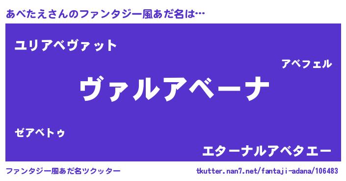 | 男性向けラノベタイトル風あだ名 | 『魔弾の王とあべたえ』『あべたえの憂鬱』 |