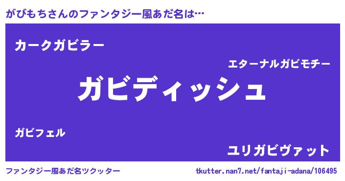 | 男性向けラノベタイトル風あだ名 | 『がびもちという概念が存在しない退屈な世界 』 |