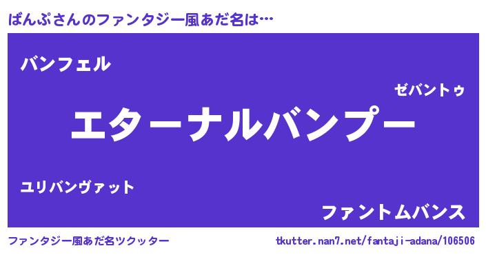 | 意味不明あだ名 | 『ばんぷフォーエバー』『ペロリンばんぷ』 |
