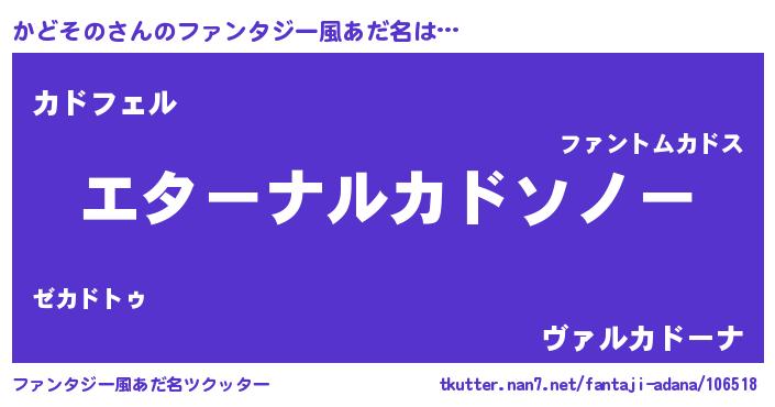 | 意味不明あだ名 | 『かどそのフォーエバー』『自称かどその』 |