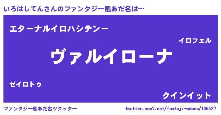 | 男性向けラノベタイトル風あだ名 | 『魔弾の王といろはしてん』 |