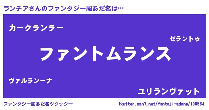 | 男性向けラノベタイトル風あだ名 | 『ランチアの嫁は女の子じゃないと思った?』 |