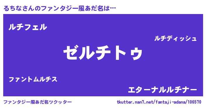 | 男性向けラノベタイトル風あだ名 | 『るちなに滅ぼされるだけの簡単なお仕事です』 |