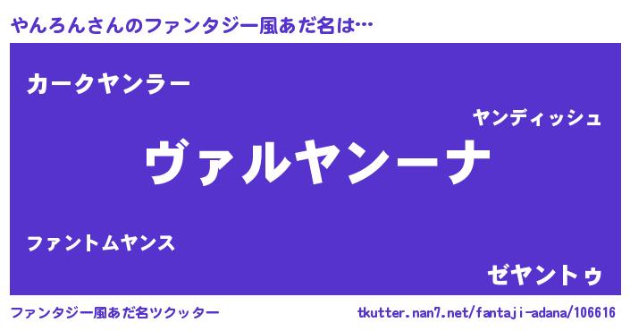 | 女子向けラノベタイトル風あだ名 | 『乙女ゲームの破滅フラグしかない悪役やんろんに転生してしまった…』 |