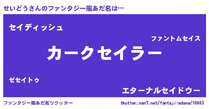 | ヒーロー風カッコイイあだ名 | 『ネオセイドウ』『ウルトラせいどうマン』 |