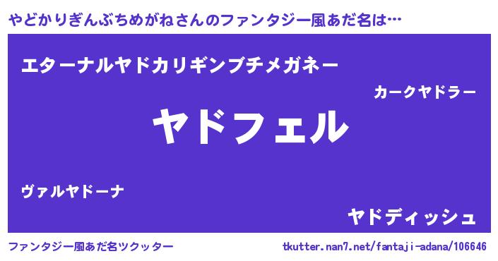 | ポケモン風あだ名 | 『ヤドチュウ』『ヤドカダネ』 |