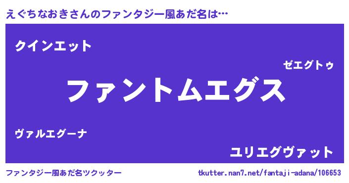 | ヒーロー風カッコイイあだ名 | 『炎刃騎士エグ』『愛の使者えぐちなおき』 |