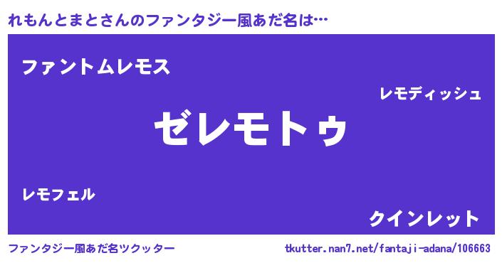 | ヒーロー風カッコイイあだ名 | 『究極戦士レモントマト』『幻影騎士レモ』 |