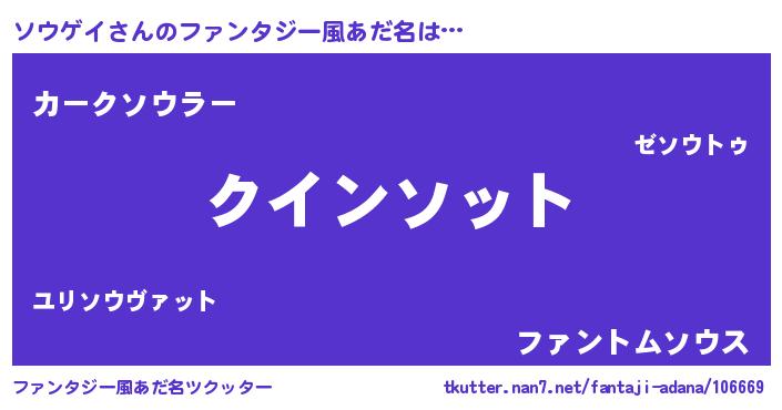 | ヒーロー風カッコイイあだ名 | 『天空の使者ソウゲイ』『魔戒騎士ソウ』 |