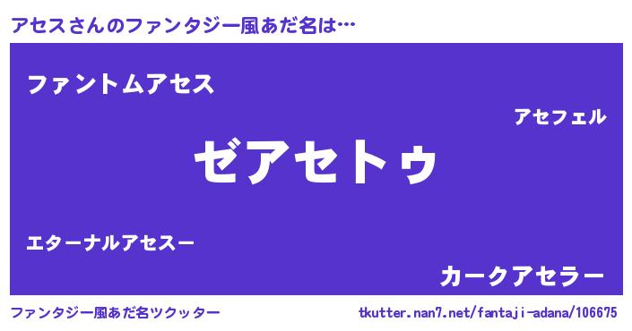 | 男性向けラノベタイトル風あだ名 | 『魔法科高校のアセス』『緋弾のアセス』 |