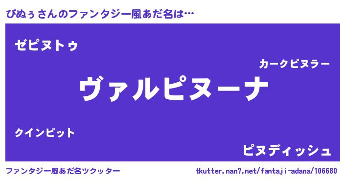 | ヒーロー風カッコイイあだ名 | 『仮面ピヌダー』『最強戦士ピヌゥ』 |