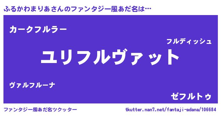 | 男性向けラノベタイトル風あだ名 | 『ふるかわまりあ~年齢イコール彼女いない歴の魔法使い~』 |