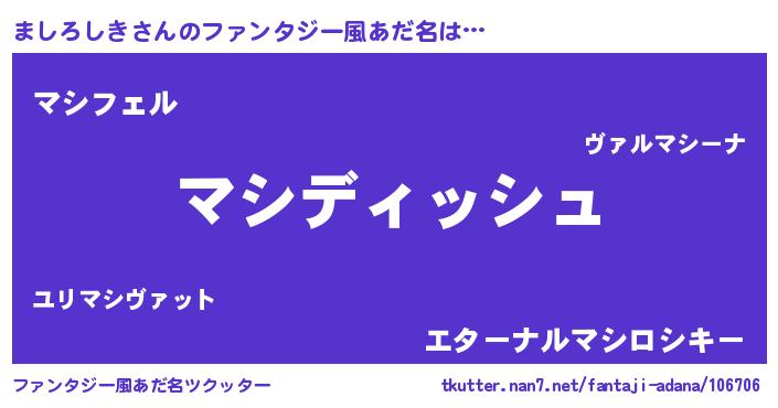 | ヘコむあだ名 | 『ましろしき(苦笑)』『ましもー』 |