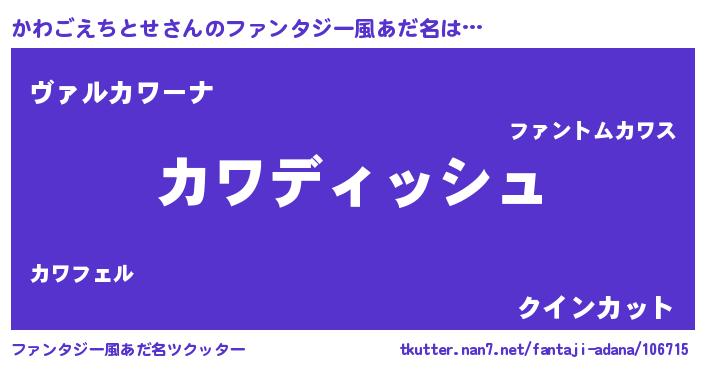 | 男性向けラノベタイトル風あだ名 | 『かわごえちとせという概念が存在しない退屈な世界 』 |