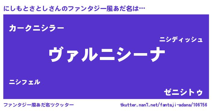 | 男性向けラノベタイトル風あだ名 | 『この素晴らしい世界ににしもとさとしを!』 |