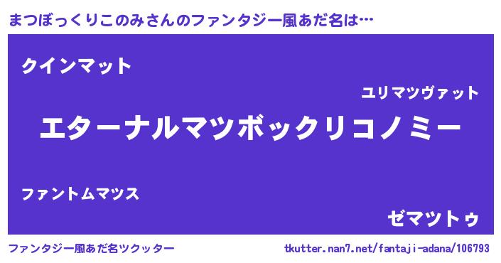 | 欧米人風あだ名 | 『まつぼっくりこのみクリステル』 |