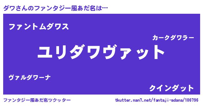 | 男性向けラノベタイトル風あだ名 | 『転生したらダワだった件』 |