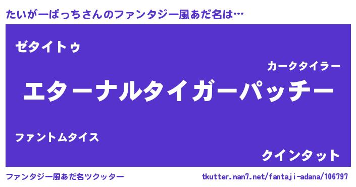 | 意味不明あだ名 | 『たいがーぱっちフォーエバー』 |