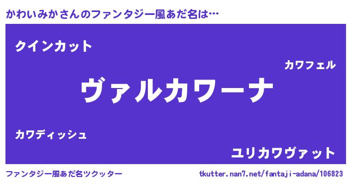 | ヒーロー風カッコイイあだ名 | 『仮面カワダー』『正義の使者かわいみか』 |