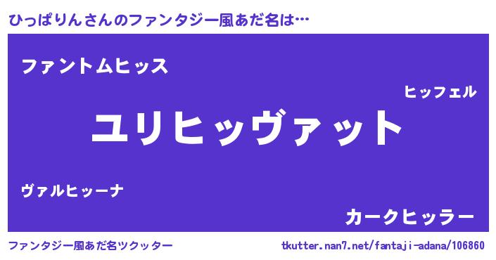 | 女子向けラノベタイトル風あだ名 | 『ひっぱりんの玉の輿計画!』 |