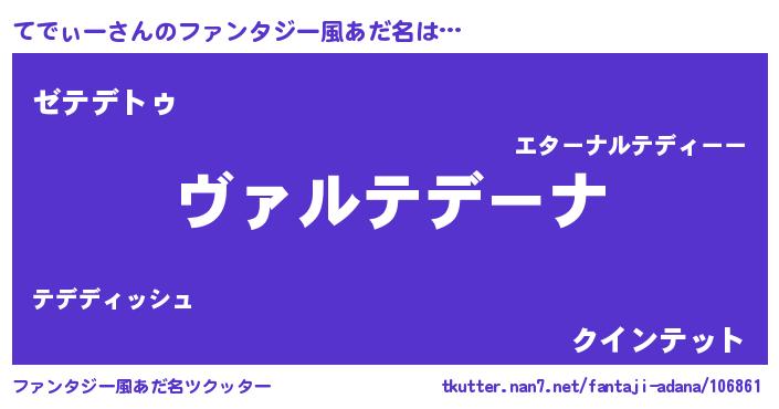 | 男性向けラノベタイトル風あだ名 | 『魔弾の王とてでぃー』 |