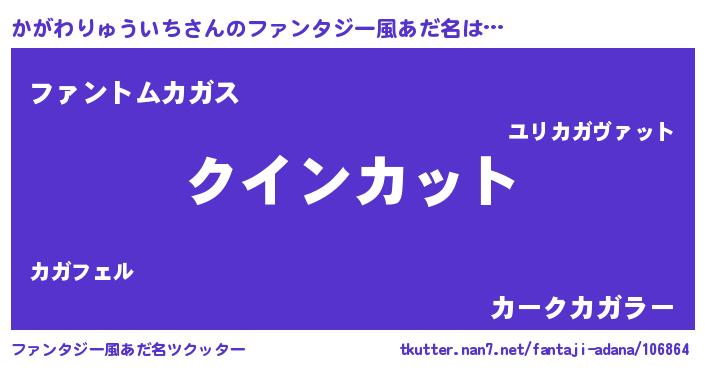 | 男性向けラノベタイトル風あだ名 | 『おまえをオタクにしてやるから、俺をかがわりゅういちにしてくれ! 』 |