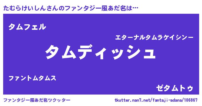 | ヒーロー風カッコイイあだ名 | 『ネオタムラケイシン』『黄金騎士タム』 |