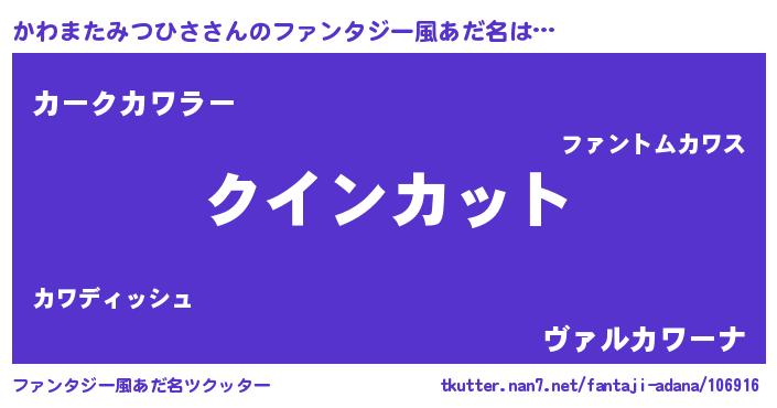 | ヘコむあだ名 | 『かわぷりん』『かわまたみつひさ(笑)』 |