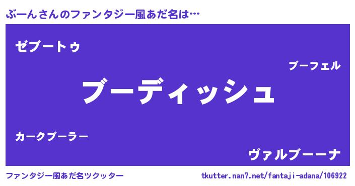| 意味不明あだ名 | 『永久保存ぶーん』『自称ぶーん』 |