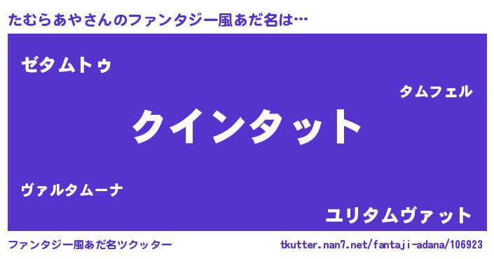 | 男性向けラノベタイトル風あだ名 | 『おまえをオタクにしてやるから、俺をたむらあやにしてくれ! 』 |