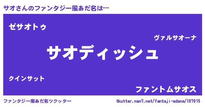 | ヒーロー風カッコイイあだ名 | 『ネオサオ』『超時空戦士サオ』 |