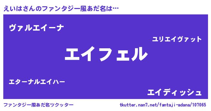 | 男性向けラノベタイトル風あだ名 | 『えいはの憂鬱』 |